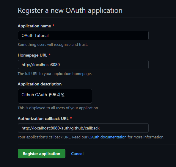 깃허브에 애플리케이션 등록하기