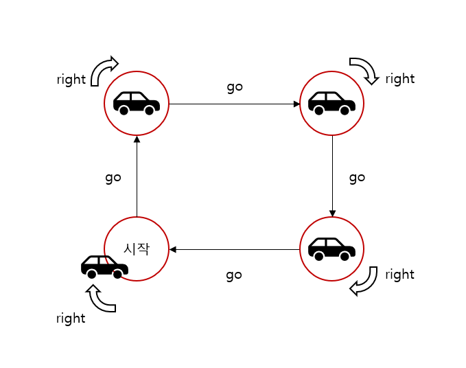 정사각형 모양을 그리고 다시 시작 지점으로 돌아오는 커맨드