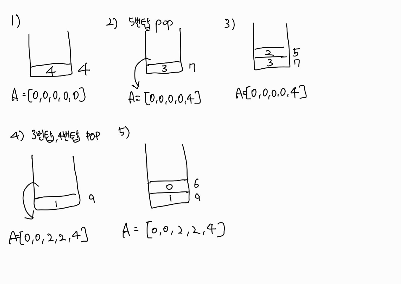 마지막부터 거꾸로 찾아가야 하므로 마지막 탑의 인덱스부터 스택에 넣는다. 만약 푸시할 탑이 스택의 맨 위에 있는 탑보다 더 높은 탑인 경우 현재 스택에 들어있는 탑을 빼고 정답 배열에 푸시할 탑의 인덱스 + 1한 값을 넣는다.