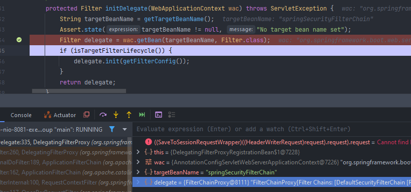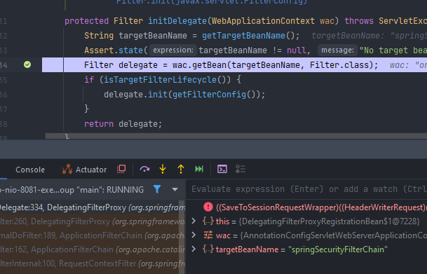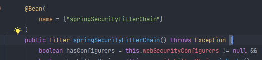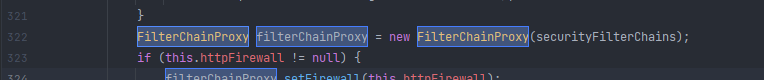 실제 WebSecurity 클래스에서 보면 FilterChainProxy를 생성할 때 securityFilterChain을 인수로 받는 것을 볼 수 있다.