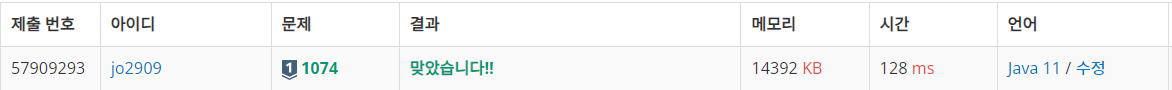 드디어 원하던 (6, 5) 에 대한 값을 찾았다! 이제 count 값을 출력하기만 하면 된다.
