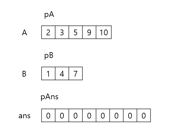 - pA: A에서 현재 인덱스를 가리키는 포인터 변수이다.