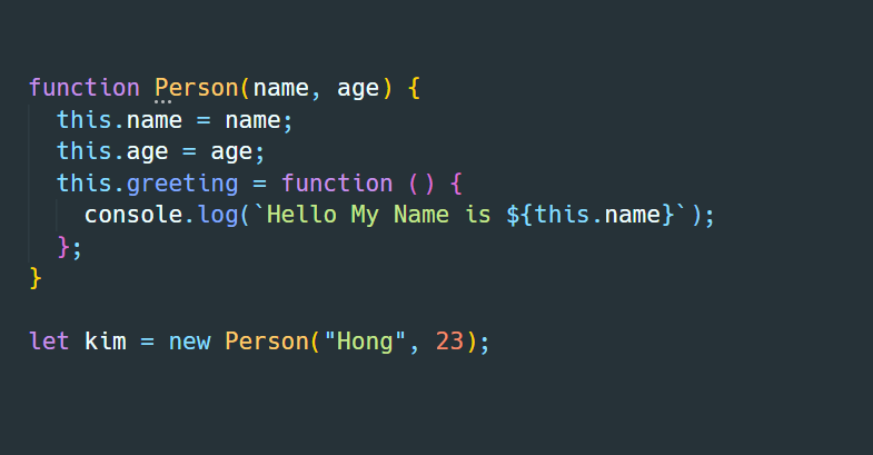 생성자 함수로 객체를 생성하기 위해서는 우선 생성자 함수를 정의해야 합니다.