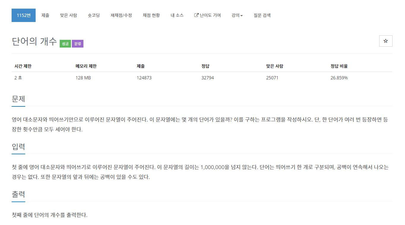 [Baekjoon] 1152번 문제풀이