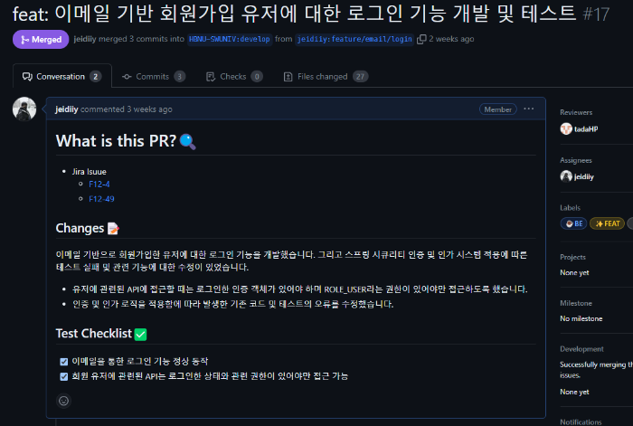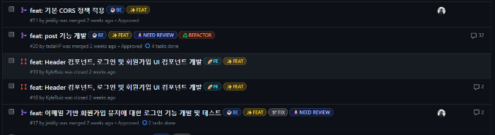 현재 프로젝트 개발을 시작한지 2달 정도 되었고 이제 다들 충분히 Git & GitHub, PR을 잘 활용하는 것을 보고 뿌듯했다. 교수님께서 우리 팀이 GitHub를 사용하는 것을 보고 칭찬해주신 건 안 비밀 ㅎㅎ