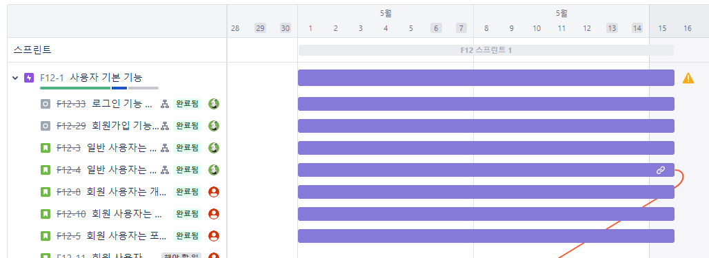 - Jira를 활용하여 스프린트, 백로그, 이슈 등을 관리하고 공유했다. 이를 통해 프로젝트가 어떻게 진행되고 있는지 알 수 있었다.